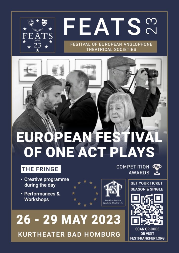 For many years, FEST has been participating in FEATS, the Festival of European Anglophone Theatrical Societies, the largest English-language theatre festival on the European continent. We are one of the regular hosts of this travelling one-act festival (1991, 1996, 2003, 2010, 2017). In 2023 FEST hosted FEATS for the sixth time at the Kurtheater Bad Homburg.