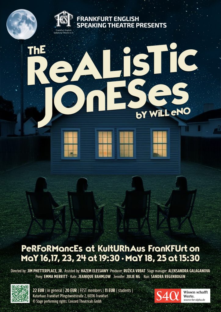 Ružica first felt a spark for the performing arts at age 8, dancing on stage in her hometown’s cultural center in Croatia. She later joined the local youth theatre at 14, where her on-stage career flourished until she moved to Germany at age 23. Since then, she has immersed herself in the local theatre scene, continuing dance classes and participating in Frankfurt’s improvisational theatre workshops. Ružica made her return to the stage with FEST in 2024 as Jenny in Old Saybrook and has been involved backstage in numerous FEST productions. Now she’s combining her professional background in administration and management with her passion for theatre. Eager to embrace this new creative challenge, The Realistic Joneses marks Ružica’s debut as a producer.