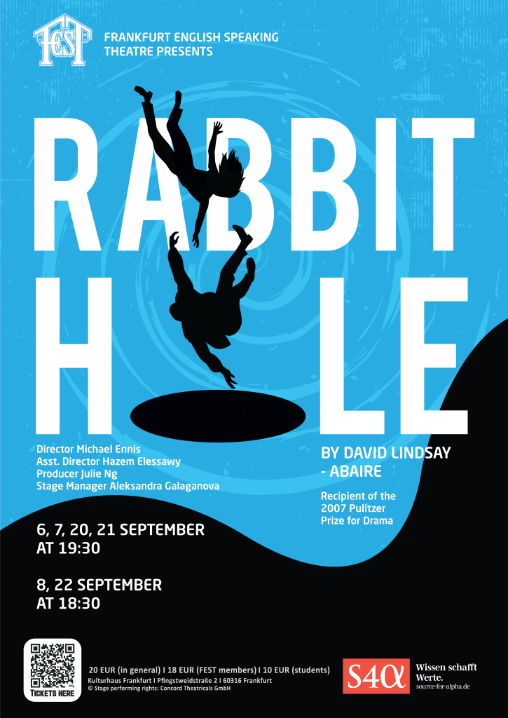 Alexander hails from the UK, where his acting journey began at age six with a starring role (literally carrying a star) in his school’s nativity play—sadly, not as the first (or any other) lobster. His true love for acting ignited at 16 in Germany, playing Kasimir in Kasimir und Karoline with his school theatre club. Despite his passion, Alexander took a 20-year hiatus to work, travel, and be a dad, with regular performances of Zog for his kids and singing musical soundtracks at every opportune (or inopportune) moment. But “a million dreams were keeping him awake,” and so, in 2024, new to Frankfurt and determined to make his dreams a reality, he found FEST, and the rest, as they say, is history—or at least will be soon. Alexander is excited to return to the stage with Rabbit Hole.